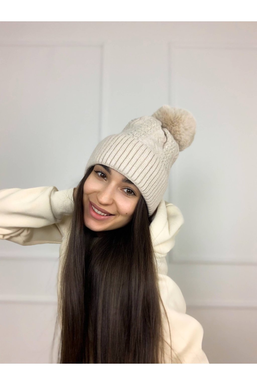 BÉŽOVÁ ČIAPKA S BRMBOLCOM "SHINE"